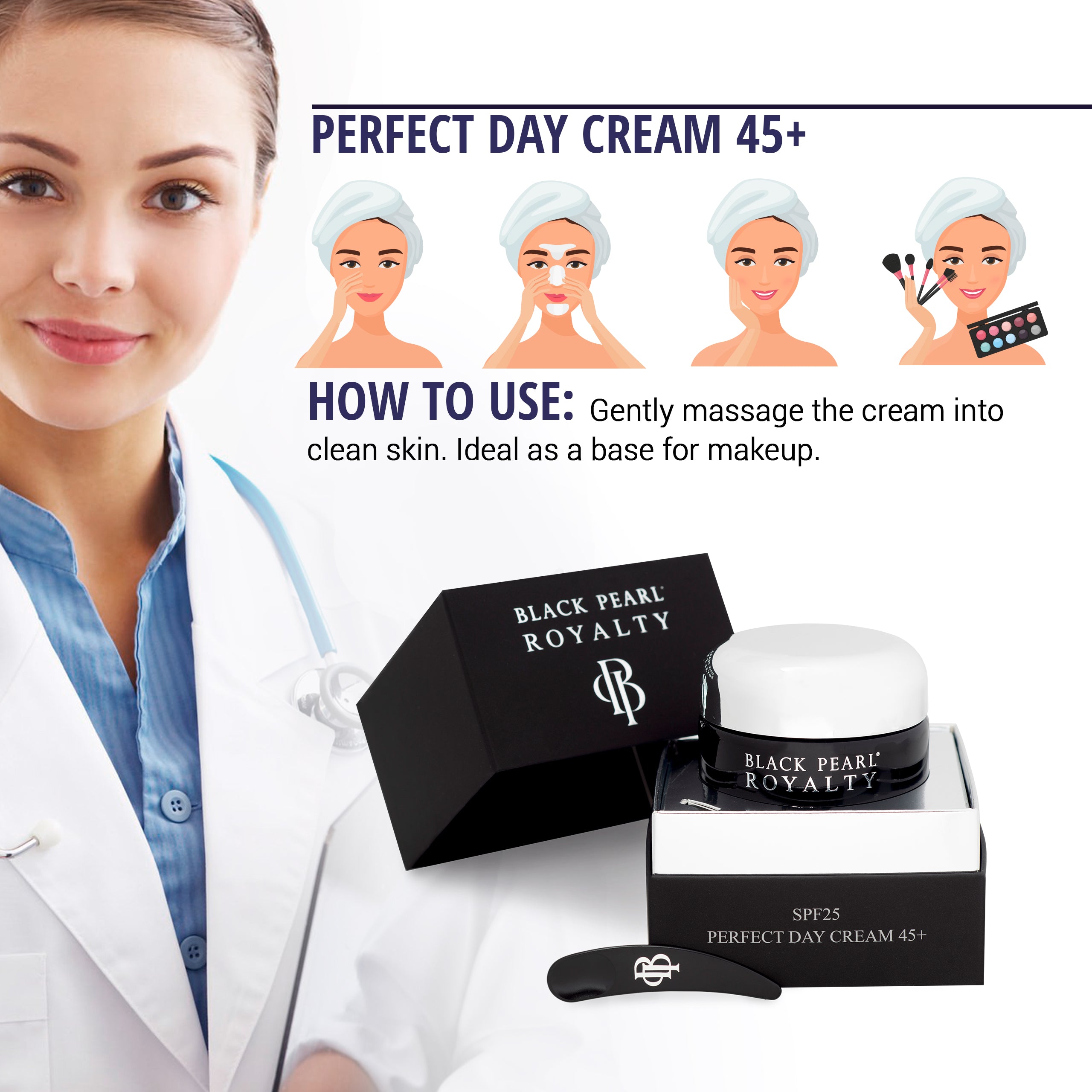 Gently massage the cream into clean skin. Ideal as a base for makeup.