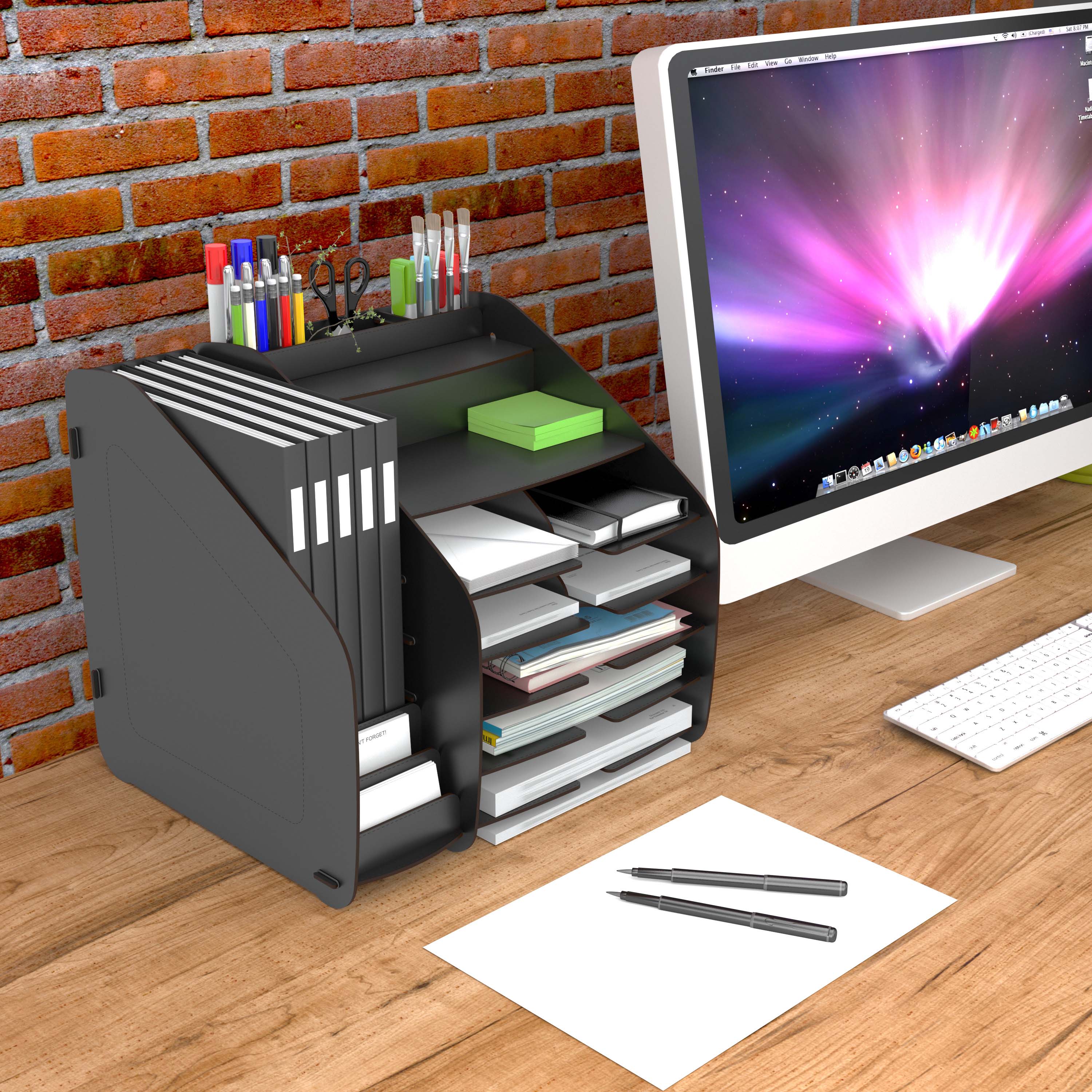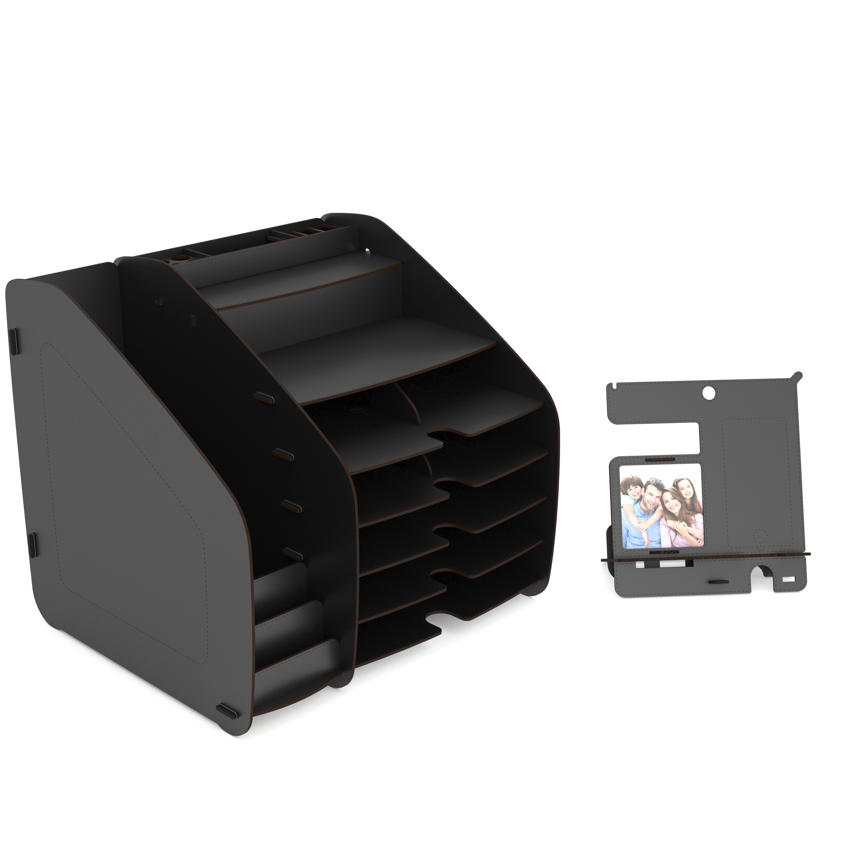 Crafted from premium MDF, Fx-M Modest Organizer design will keep your workspace free of clutter and give your desk an aesthetic look with its functionality and stylish design. There is a large compartment where you can store your things. There are 2 more pockets on the front of this compartment where you can put business cards or note papers.