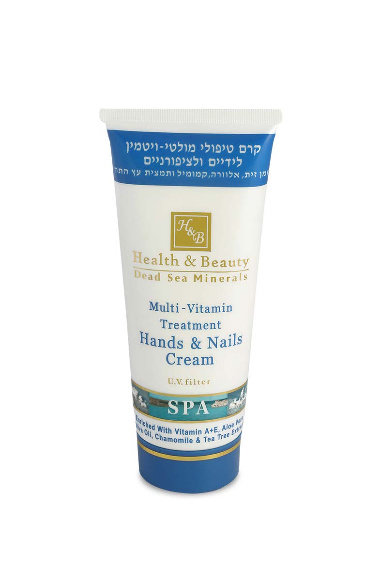 A professional cream with a rich, non-oily texture made especially for your hands and fingernails. It works its charms directly through the upper layer of the skin, by covering it with a protective layer which neutralizes the harmful effects of the environment such as sun exposure and detergents. Furthermore, the cream smoothens and softens the hands and strengthens broken or chipped fingernails. The Multi Vitamin Treatment Hands & Nails Cream is enriched with Olive oil, Aloe Vera, Chamomile, Tea Tree extract and Evening Primrose oil. It includes Vitamins A & E and Dead Sea minerals to strengthen the vitality of the skin and also UV filters to protect the skin of your hands.