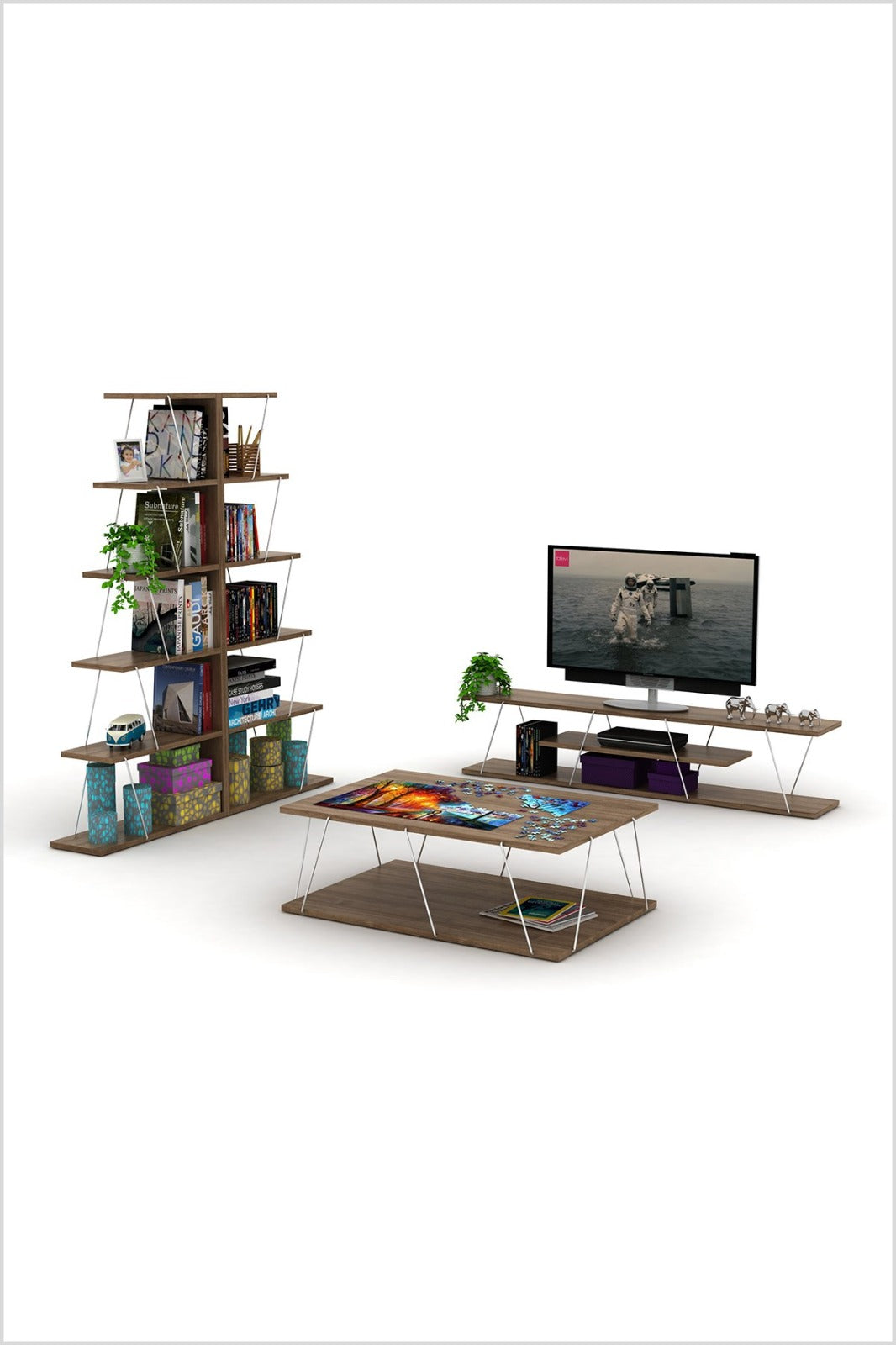 The geometric bookcase will create a modern look at your home by completing your decor thanks to its outstanding design. Tars Bookcase offers an ideal and decorative solution for your many books with its modern design and useful shelves.