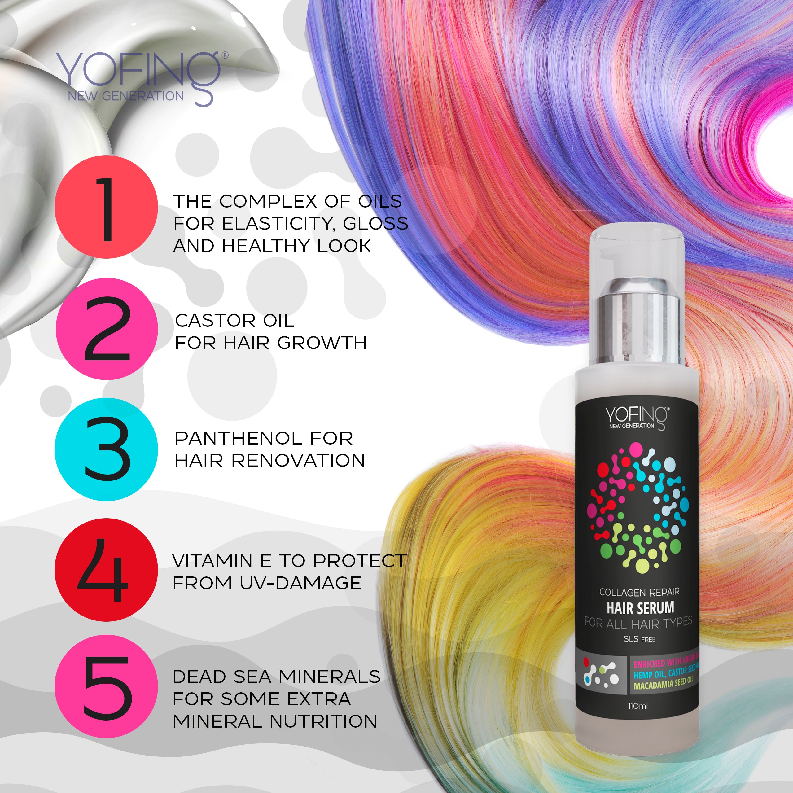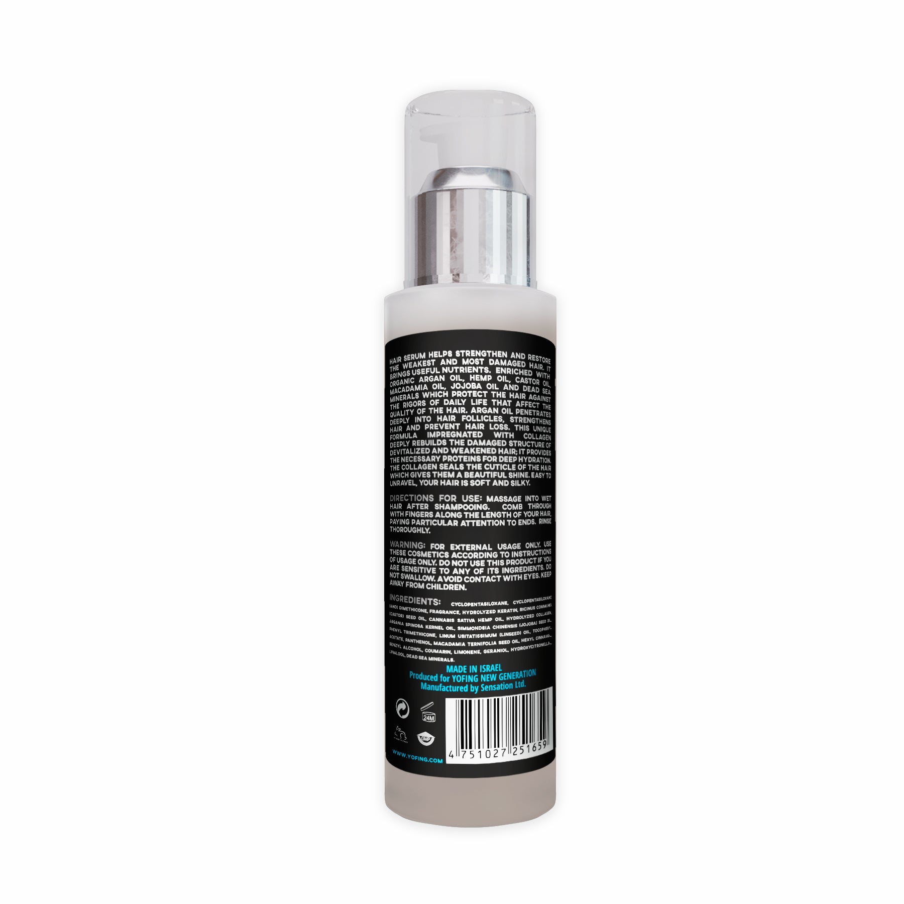 Hair Serum helps strengthen and restore the weakest and most damaged hair. It brings useful nutrients. Enriched with Organic Argan Oil, Hemp Oil, Castor Oil, Macadamia Oil, Jojoba Oil and Dead Sea Minerals which protect the hair against the rigors of daily life that affect the quality of the hair.